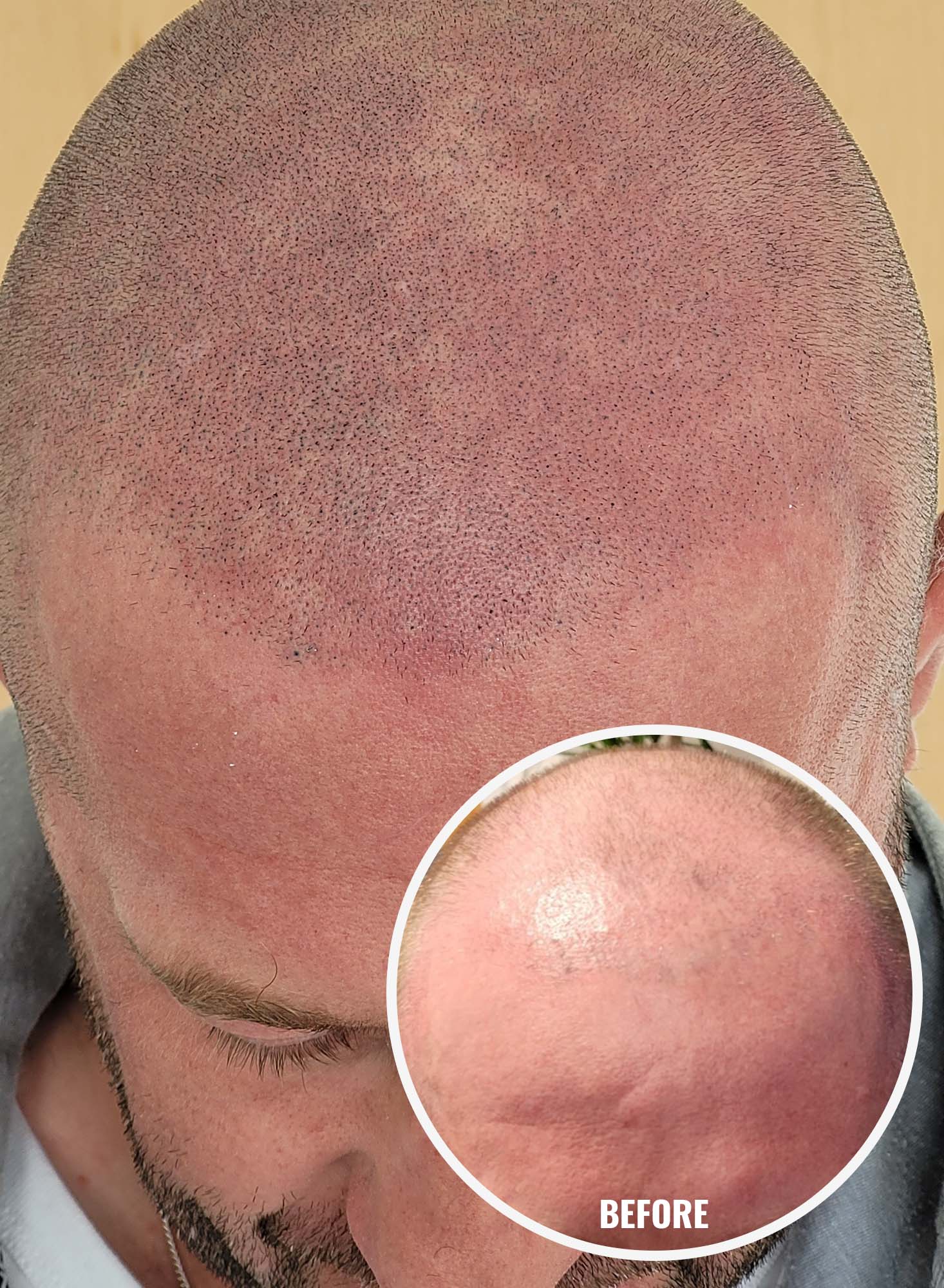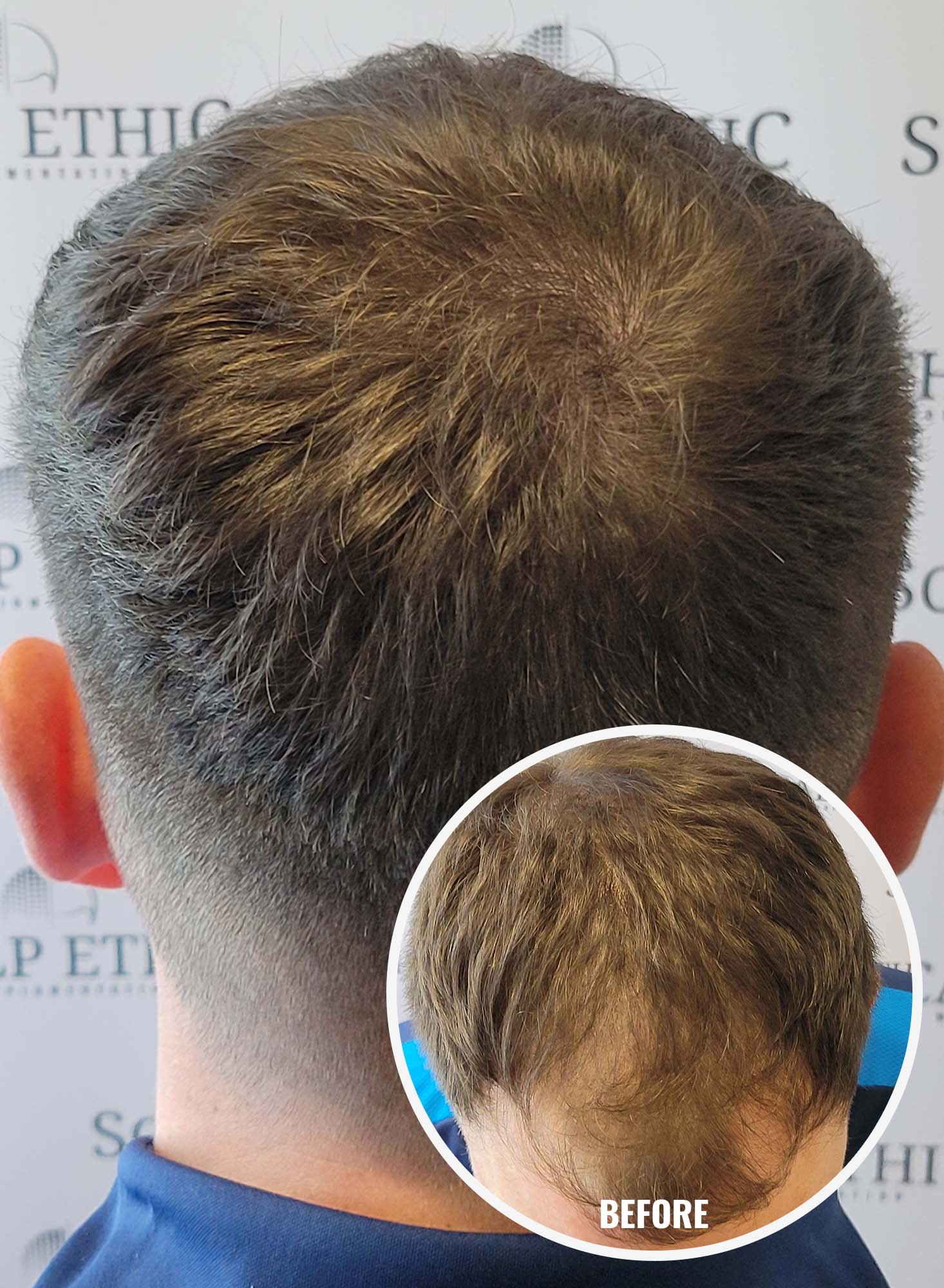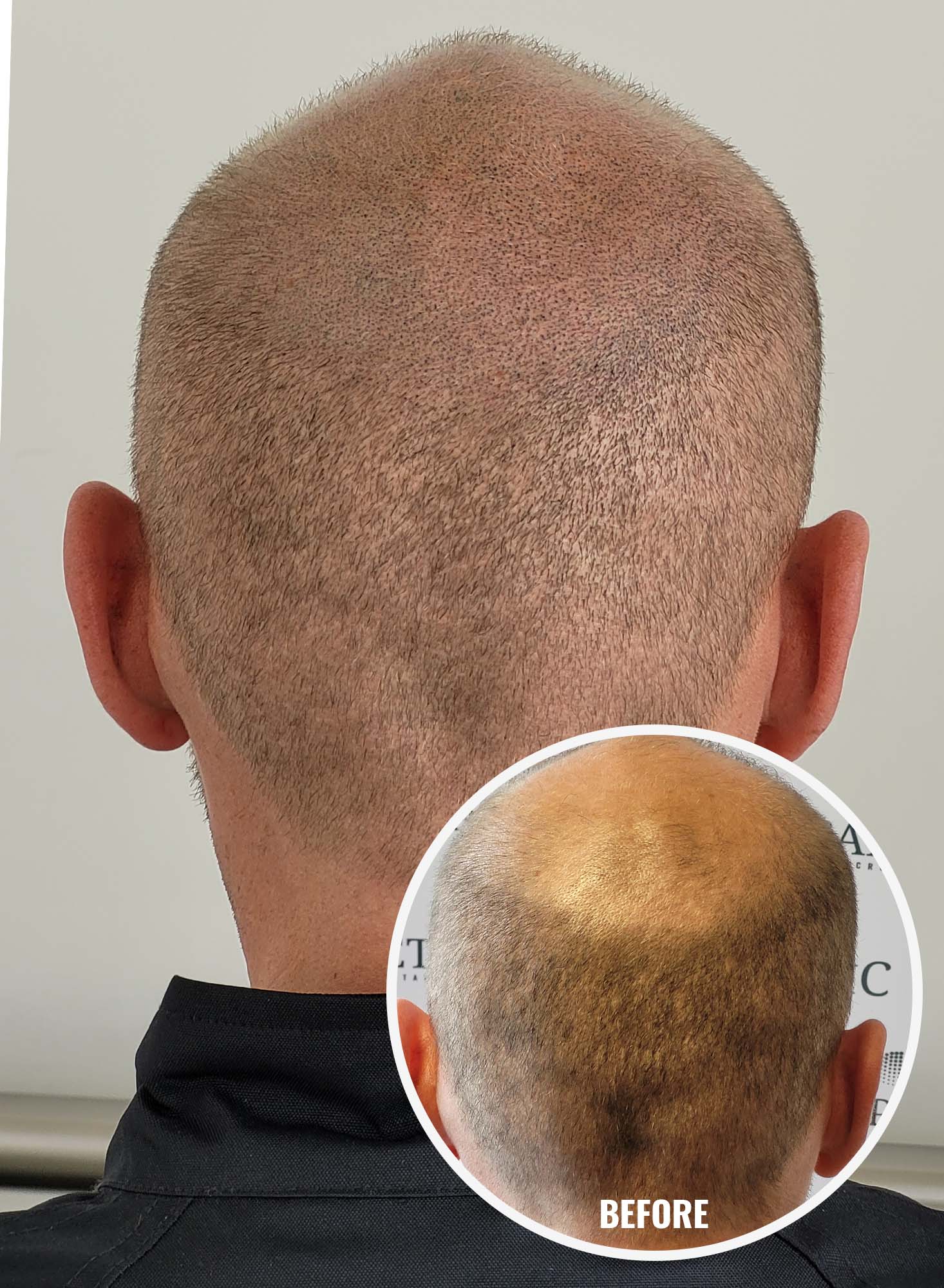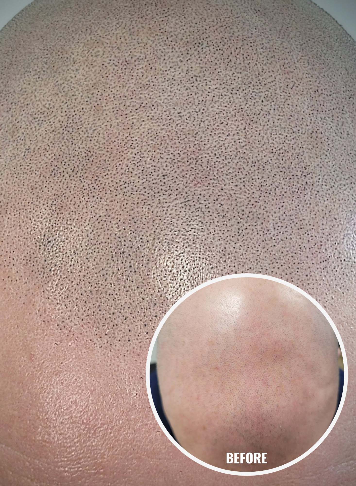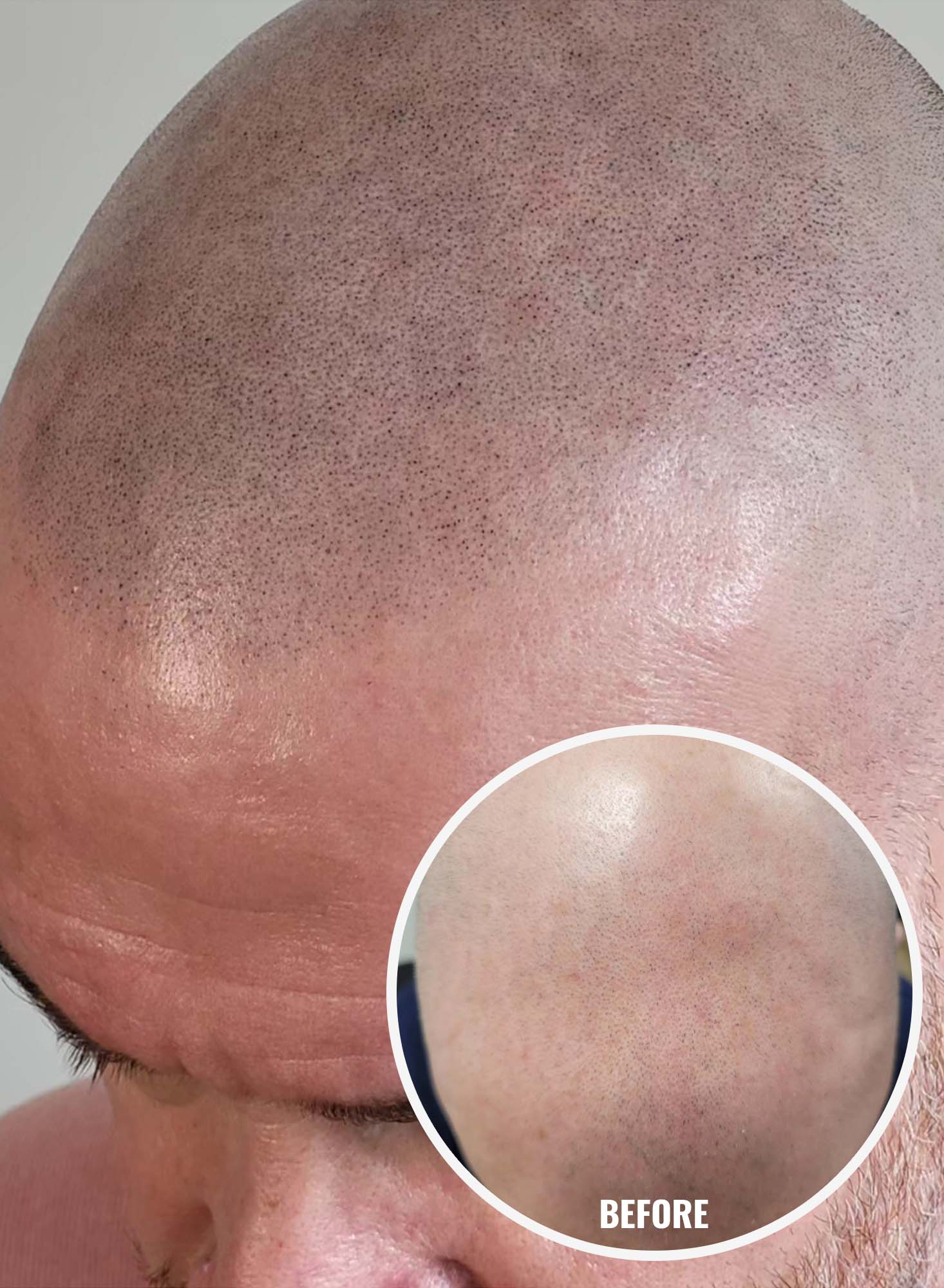 Browse through our impressive gallery of before and after photos to witness firsthand the remarkable outcomes our clients have experienced. Each image showcases the meticulous attention to detail and precision we apply during the SMP process. From receding hairlines to thinning crowns, our SMP treatments have successfully addressed a variety of hair loss concerns.
